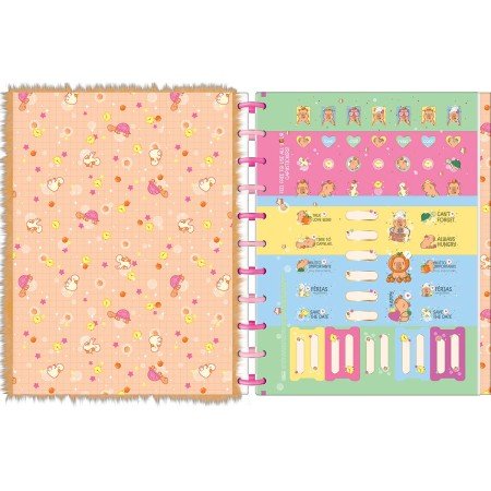 O Caderno Universitário Tilidisco 10 Matérias Pelúcia CapyClub 160 Folhas garante a liberdade para você se organizar como bem entender. O produto é desenvolvido com capa dura removível de pelúcia, 11 discos coloridos, bolsa plástica, índice, separador de matérias, adesivos para decorar e miolo pautado com 160 folhas, de 90 g/m², soltas que podem ser tiradas e adicionadas quantas vezes quiser.