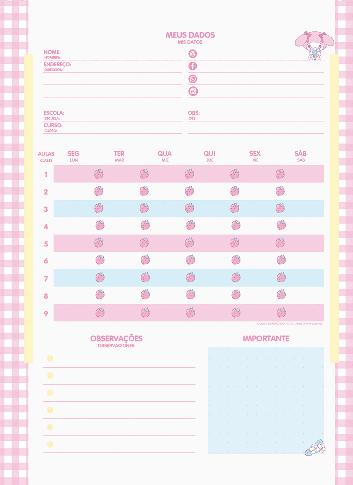 Adicione um toque de doçura e estilo à sua rotina com o Caderno Universitário My Melody da Jandaia! Perfeito para escola, faculdade ou uso pessoal, ele une o charme da personagem da Sanrio com praticidade e inovação.