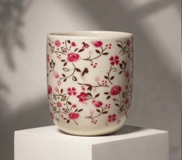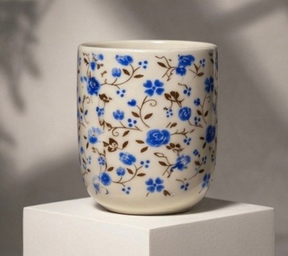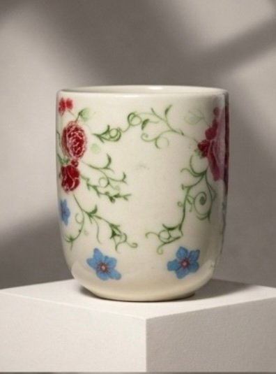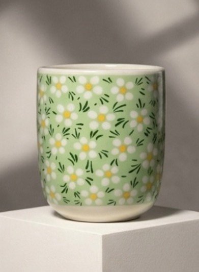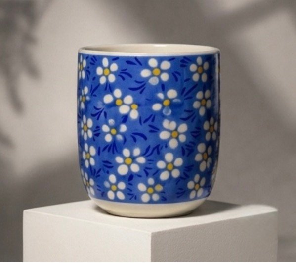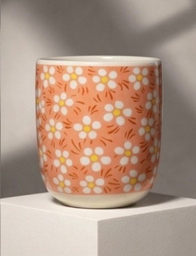 Caneca sem alça de cerâmica com estampa floral delicada, ideal para servir café, chá ou decorar ambientes com um toque romântico e artesanal. Seu acabamento em cerâmica traz charme e leveza, enquanto as estampas florais coloridas deixam a peça ainda mais encantadora para compor mesas, cantinhos de café ou presentear.
