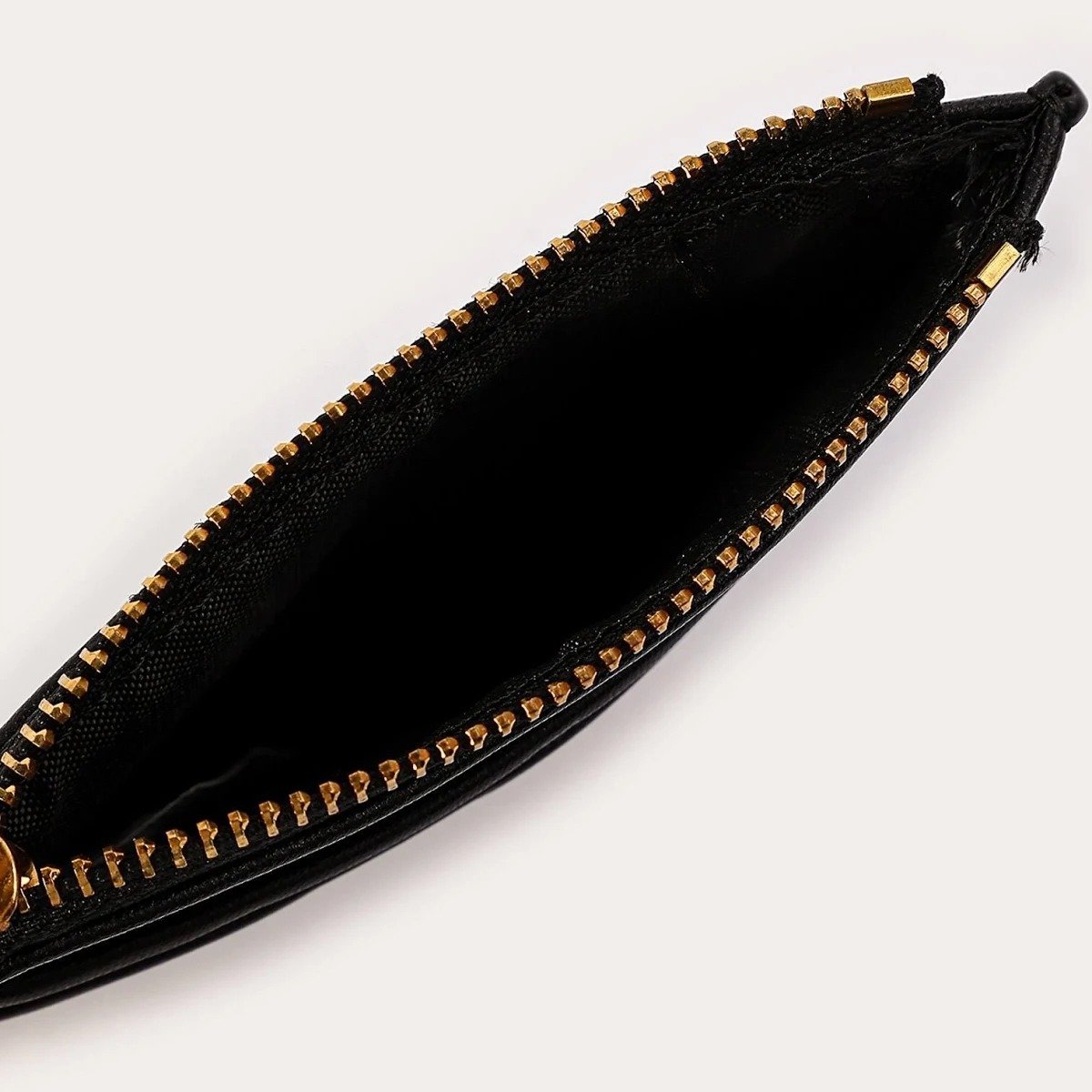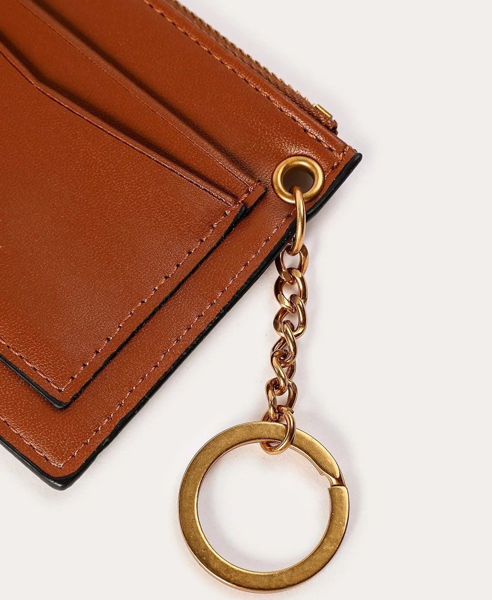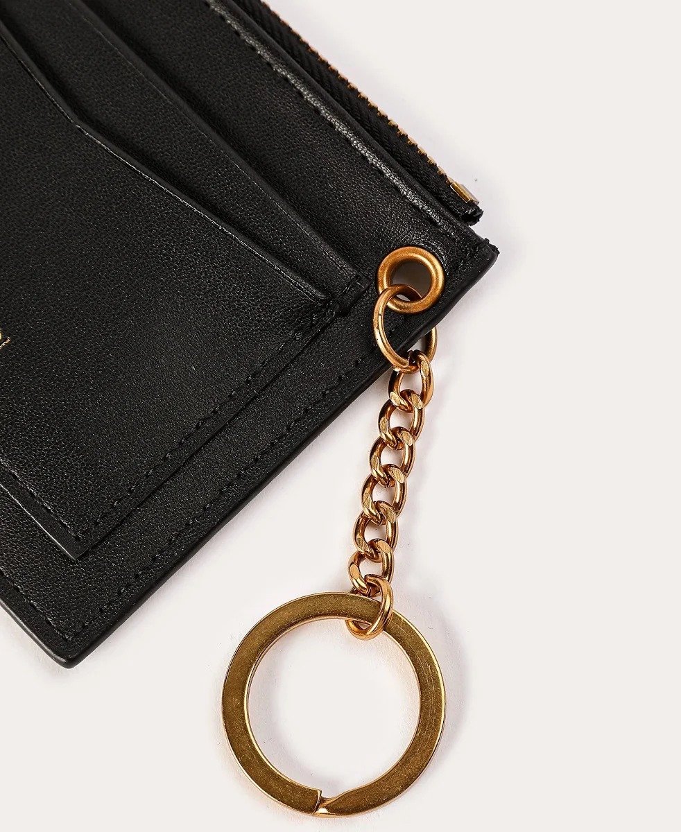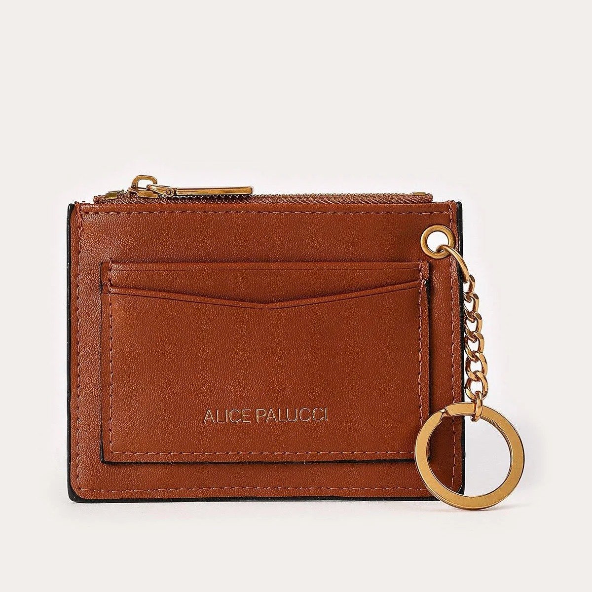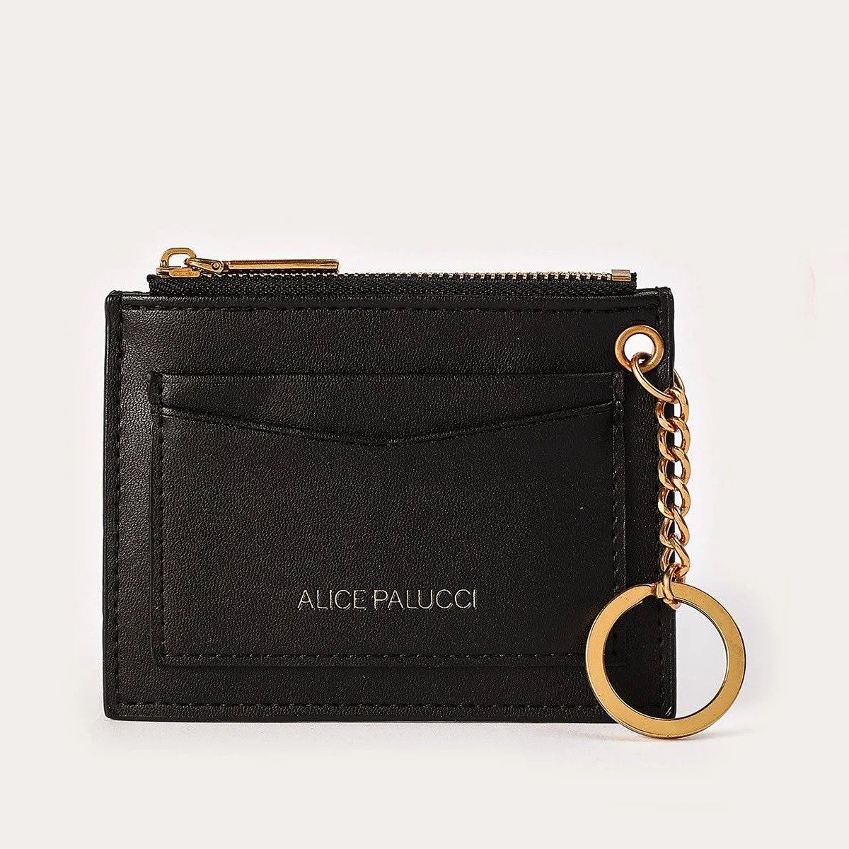 Esta Carteira feminina porta-cartão lettering com chaveiro| Alice Palucci é a combinação perfeita entre praticidade e sofisticação: confeccionada em material texturizado de acabamento impecável, ela conta com compartimento principal com zíper para guardar itens essenciais com segurança, além de múltiplos slots externos que facilitam o acesso rápido aos cartões do dia a dia. O design compacto em tons elegantes, aliado ao detalhe da marca em dourado, transforma a peça em um acessório moderno, funcional e estiloso, ideal para quem busca organização sem abrir mão de charme e durabilidade.