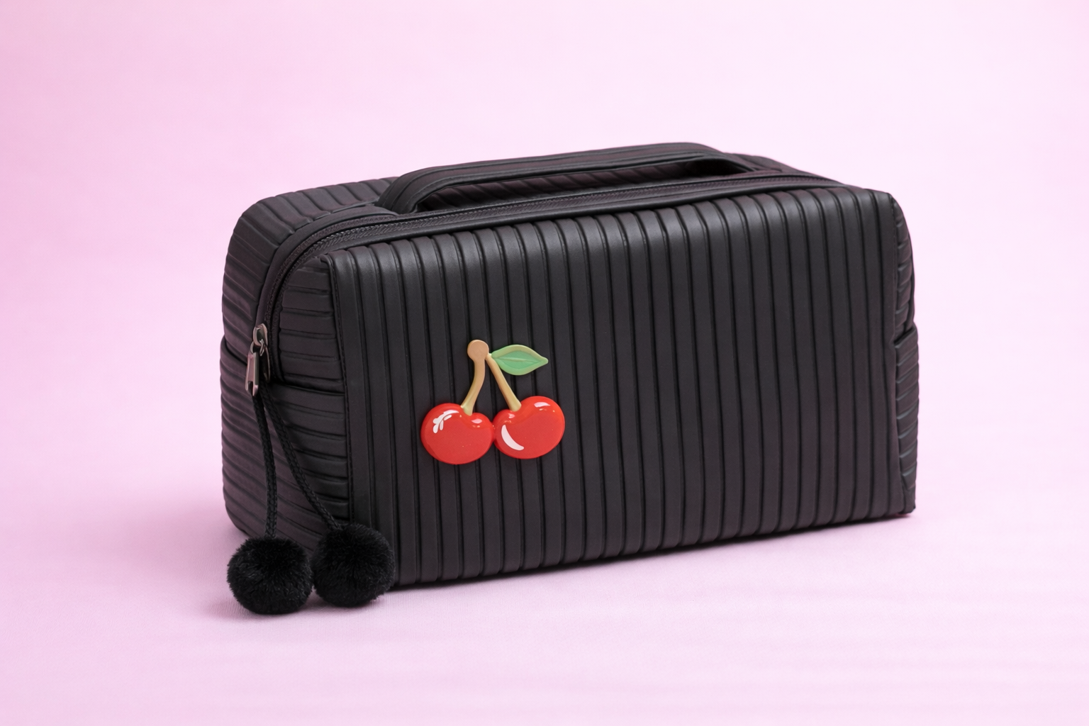 A Necessaire Cereja é perfeita para quem busca praticidade sem abrir mão do estilo. Com visual moderno e estampas monocromáticas, ela traz um toque elegante e contemporâneo para o dia a dia. Ideal para organizar maquiagem, itens de higiene, acessórios e pequenos objetos, é uma peça versátil para usar na bolsa, em viagens ou na rotina.