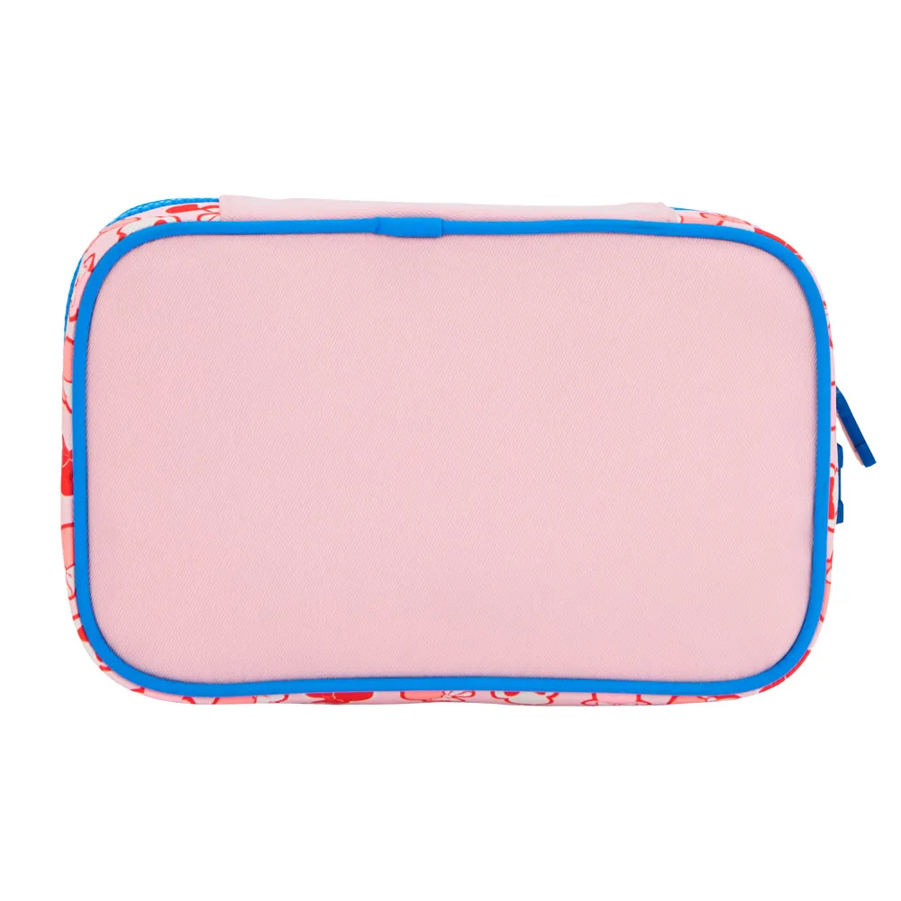 Por dentro, o estojo tem compartimento interno com elásticos organizadores, ideal pra deixar canetinhas, lápis e acessórios todos no lugar — e ainda sobra espaço pra guardar muito mais!